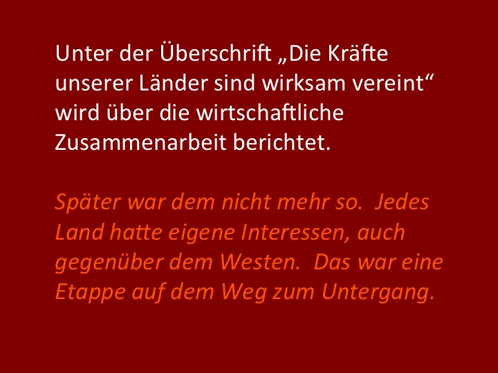 Später war dem nicht mehr so.  Jedes Land hatte eigene Interessen, auch gegenüber dem Westen.  Das war eine Etappe auf dem Weg zum Untergang.